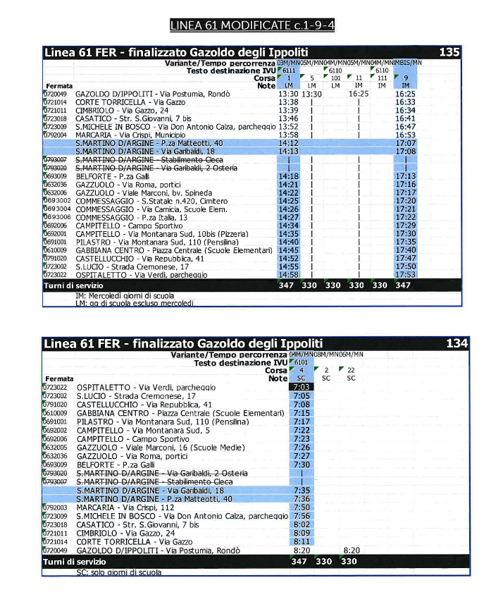 Le corse delle 13:30 e 16:25 in partenza da Gazoldo degli Ippoliti dirette ad Ospitaletto, non effettuano la seguente fermata: