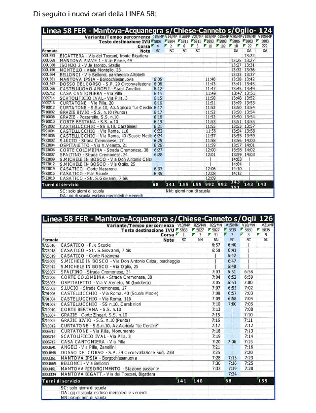 La corsa in partenza da Mantova IPSIA alle 6:15 in direzione Casatico, è anticipata alle 6:05.